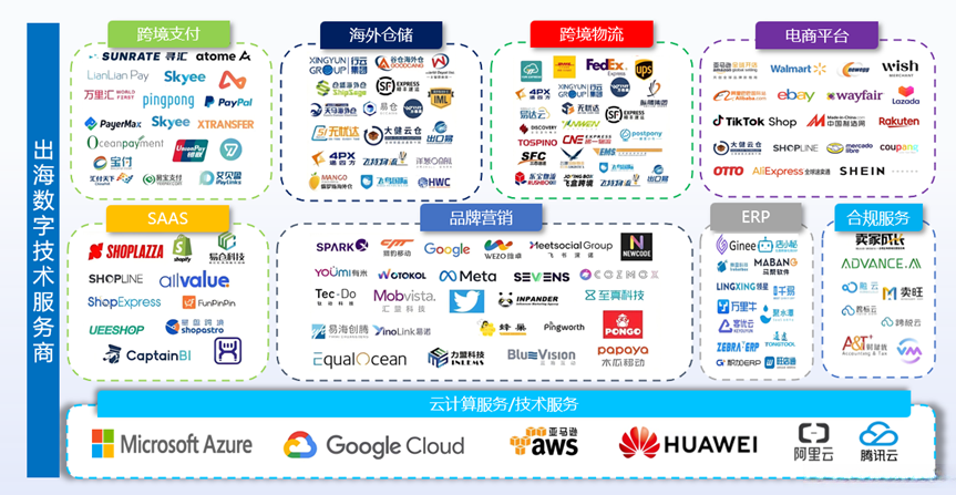 围绕中企出海,涌现大批数字技术服务商(如图)