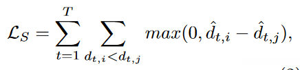 这里T表示帧数,J表示关节数。虽然 MPJPE 是 3D HPE 中广泛接受的度量标准,但它也有局限性,特别是它只关注关节位置,而没有明确考虑空间关系或姿态拓扑。这在有遮挡的场景中成为一个重要问题,在这种情况下,了解身体部位的相对位置对于准确的姿势估计至关重要。为了解决这个问题,我们引入了空间深度排序损失(spatial depth ranking loss),专门用于增强姿势拓扑相关性。此外,传统技术通常无法有效利用时间信息,因为它们通常独立地计算每个帧的损失,忽略视频序列内的连续性和相互依赖性。这种疏忽会严重限制模型随着时间的推移捕捉真实人体运动的能力,这是动态姿态估计任务的一个关键方面。为了缩小这一差距,我们提出了时间深度排名损失,这是一种新颖的组件,旨在结合时间动态以实现更准确和逼真的姿态估计。