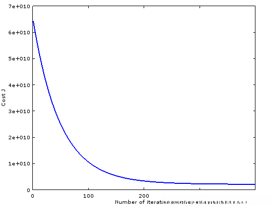 观察到等高线变得愈发密集, 椭圆形呈现出显著的扁平趋势, 因此步长不宜过大, 收敛过程较为棘手, 模型呈现的是在近似直线方向上来回摆动并渐趋缓慢的状态。关于结果是否会发生变化, 我们可以采用正规方程法进行验证, 因为梯度下降方法在此情形下面临诸多挑战。建议对ex1_muliti.m进行相应调整。