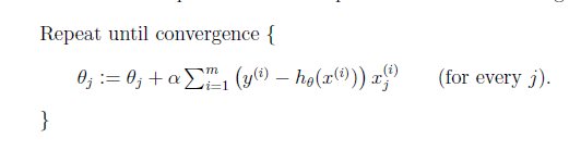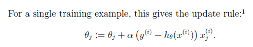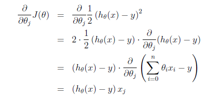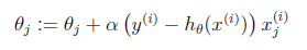 从直观上来看这个式子也比较容易理解,在数学推导中我们假设xj为正值的情况:即当输出值y大于预测值h(x)时,则需要增大θ以减少损失函数J的值;因此,在这种情况下α前面的符号为正号(类似地),如果xj为负值时,则相反的情况成立)