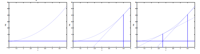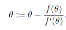 这样迭代就行,f′(θ)是斜率,从图上看,就是“用三角形去拟合曲线,找0点”