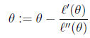 因为我们是要求导数等于0,把上面的式子替换一下f(θ) = ℓ′(θ)