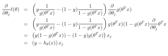在logistic回归中, 我们希望最大化似然函数的最大值(如附录所述, 这与线性回归模型相同), 因此采用加法运算符以保持一致性. 其迭代公式与线性回归模型相同, 这纯属巧合吗?不禁怀疑其中是否存在某种联系.
