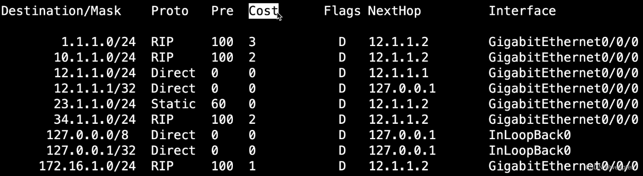 RIP:Cost 表示跳数。