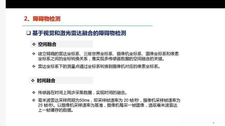 第三章自动驾驶汽车环境感知 第五节复杂场景语义理解与传感器融合 5.1概述 5.2多传感器融合结构 5.3多传感器后融合技术 5.4多传感器前融合技术