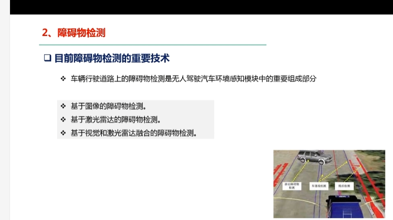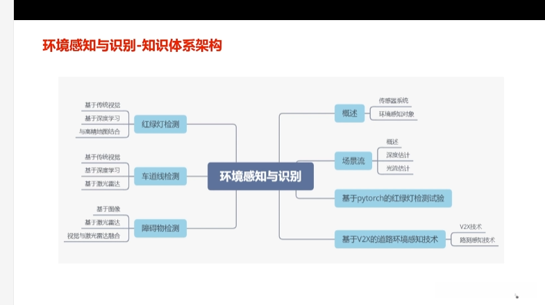 第三章自动驾驶汽车环境感知 第四节环境感知与识别 4.1概述 2\.障碍物检测 3\.车道线检测 4\.红绿灯检测 5\.场景流 6\.基于V2X的道路环境感知技术 7\.基于pytorch的红绿灯检...