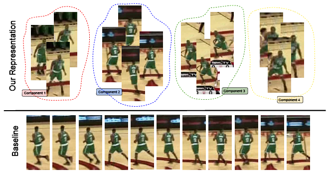 b)下半部分是得到的连续帧的训练样本,相邻帧之间的样本近似度很高。