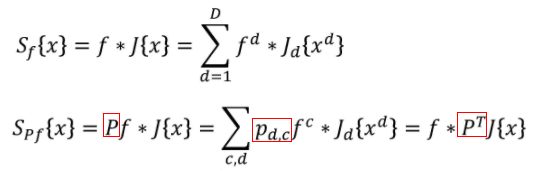 作者利用了卷积的线性特征,通过一个 D*C 的系数矩阵 P,将原来的 Score 函数进行如下变换: