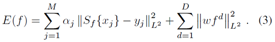 针对训练样本 x j 构造高斯函数 y j ,通过 L2 Norm 构造最小二乘目标函数,并添加权值惩罚项 w,这都是比较常用的做法: