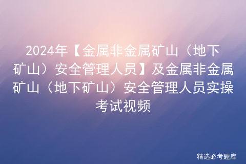 2024年【金属非金属矿山(地下矿山)安全管理人员】及金属非金属矿山(地下矿山)安全管理人员实操考试视频