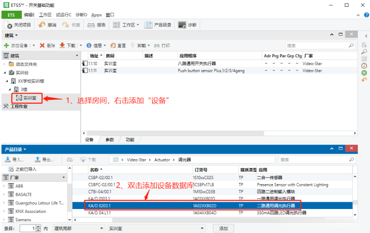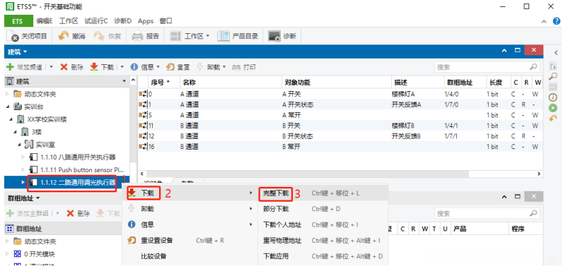 4.下载地址与应用 点击2路调光模块、8键智能按键面板的数据库,右击→下载→完整下载→按2路调光模块的编程按键。
