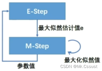 最大期望算法(Expectation Maximum)经过两个步骤交替进行计算。第一步是计算期望(E),利用对隐藏变量的现有估计值,计算其最大似然估计值。第二步是最大化(M),最大化在E步上求得的最大似然值来计算参数的值。M步上找到的参数估计值被用于下一个E步计算中,这个过程不断交替进行。示例如下: