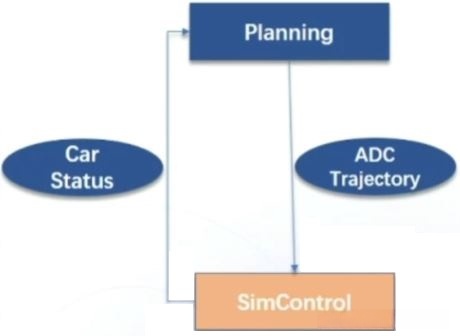 2、仿真运行是在Dreamview环境下,由SimCongtrol模块把Planning算法输出的轨迹点给到虚拟的车辆模型,让车辆在虚拟的地图上运行,示例如下: