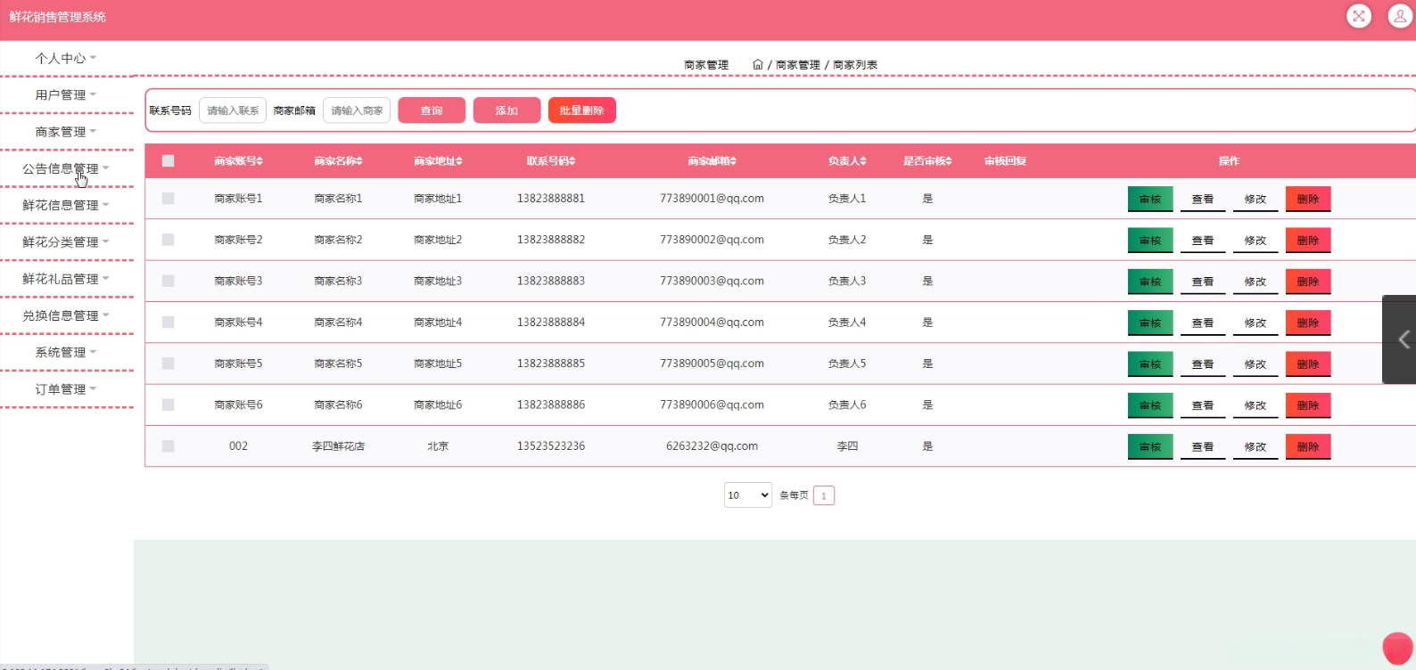 鲜花销售管理系统(JSP+java+springmvc+mysql+MyBatis)