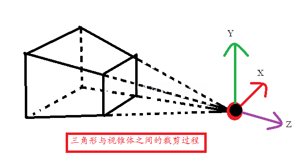 视锥体之外的部分被丢弃、视锥体之内的部分传递到下一步骤、相交部分则需要执行裁剪。