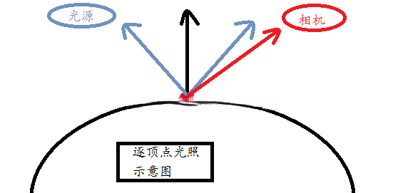 源自光源的光线将通过对象表面进行反射并于随后到达相机处。光照将在各个顶点处进行计算。通常称之为逐顶点光照计算。不过,目前逐顶点光照已经稍显过时,而更为常见的技术则是逐片元光照。