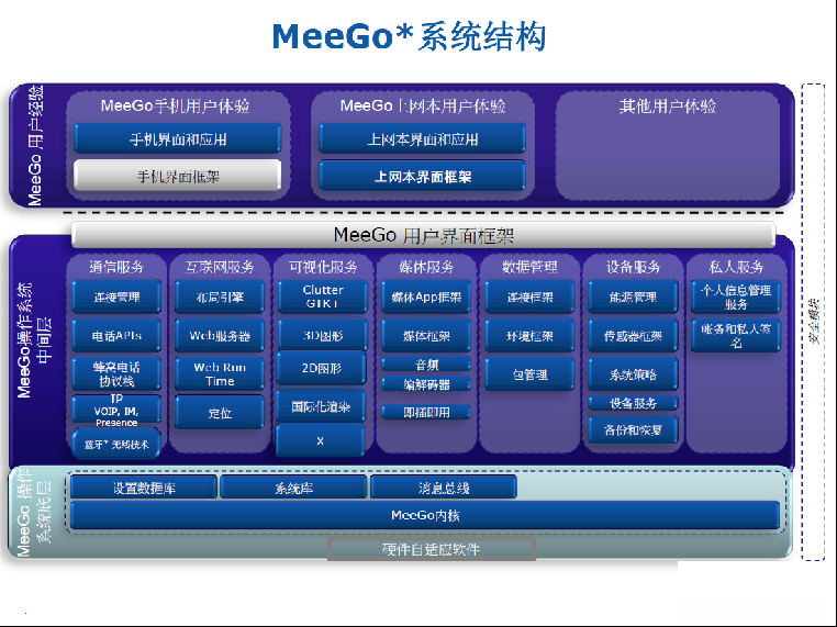 以Linux为基础开发的开源操作系统,并整合了英特尔MeeGo和三星LiMo两种技术的混合架构