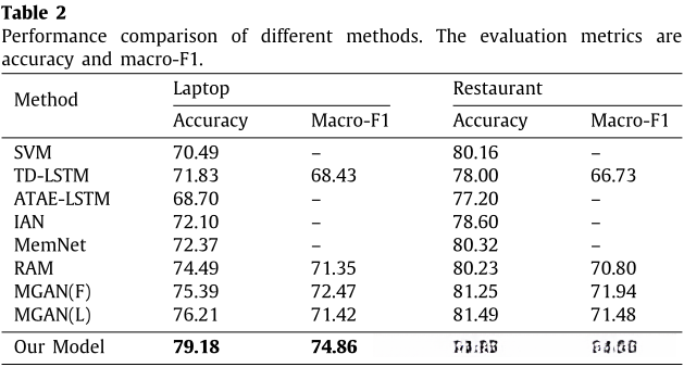 TD-LSTM:基于目标的LSTM模型;ATAE-LSTM:注意力机制驱动的LSTM模型结合Aspect Embedding