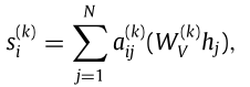 对于输入序列{w1,w2,...,wN},BERT首先通过标记嵌入、段嵌入和位置嵌入的总和来构建标记表示{E1,E2,...,EN}。随后,这些标记表示通过相同层数的堆叠进行编码。每一层都由一个多头自我注意模块和一个位置全连接模块组成。具体而言,对于隐藏状态序列H={h1,h2,...,hN},多头自我注意模块输出的序列S={s1,s2,...,sN}的计算过程如下: