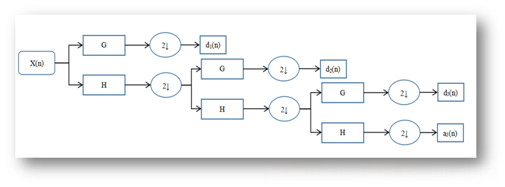 在这里我们利用小波变换的系数作为我们的特征指标. 在分析原因时, 除了考虑到小波变换具有的多分辨率特性外, 还必须注意到在该过程中隐含了降维机制的存在. 在实现层面, 我们可以选择使用Matlab平台提供的内置函数集合, 这不仅简化了操作流程, 而且显著降低了工作难度.