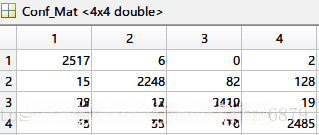 本次实验中,基于SVM的模型在测试集上的预测准确率达到1-\alpha水平,即达到1-\alpha的标准下完成了分类任务。具体而言,在测试集中识别的四个目标类别分别达到了各自的准确率数值:正常类别(N)的准确率为1-\alpha_1;室性早搏(V)为1-\alpha_2;右束支阻滞(R)为1-\alpha_3;左束支阻滞后(L)为最高分值。研究者提醒大家,在实际应用过程中需要注意这些特殊点的具体表现形式及其对结果的影响程度。此外,在代码库中还提供了评估多分类问题性能的一种常用指标工具——混淆矩阵。通过工作空间中的操作菜单打开名为'Conf_Mat'的混淆矩阵文件即可完成数据验证过程