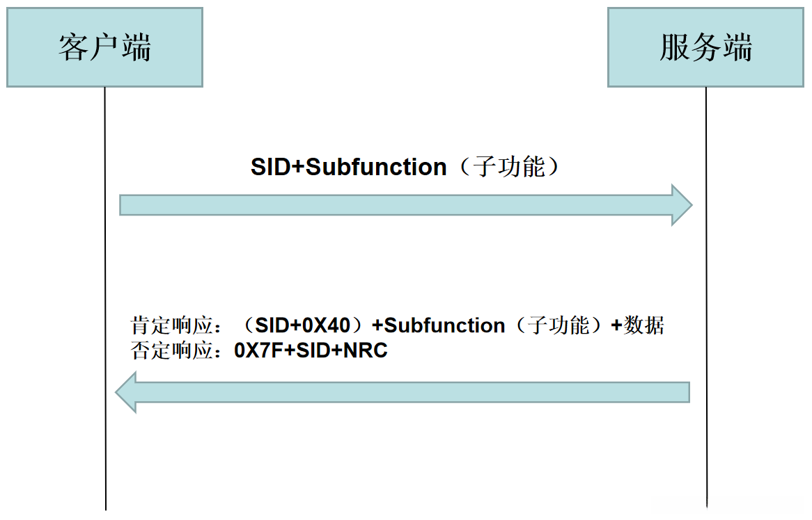 具有Subfunction(子功能)的UDS诊断服务请求和响应机制如下图所示: