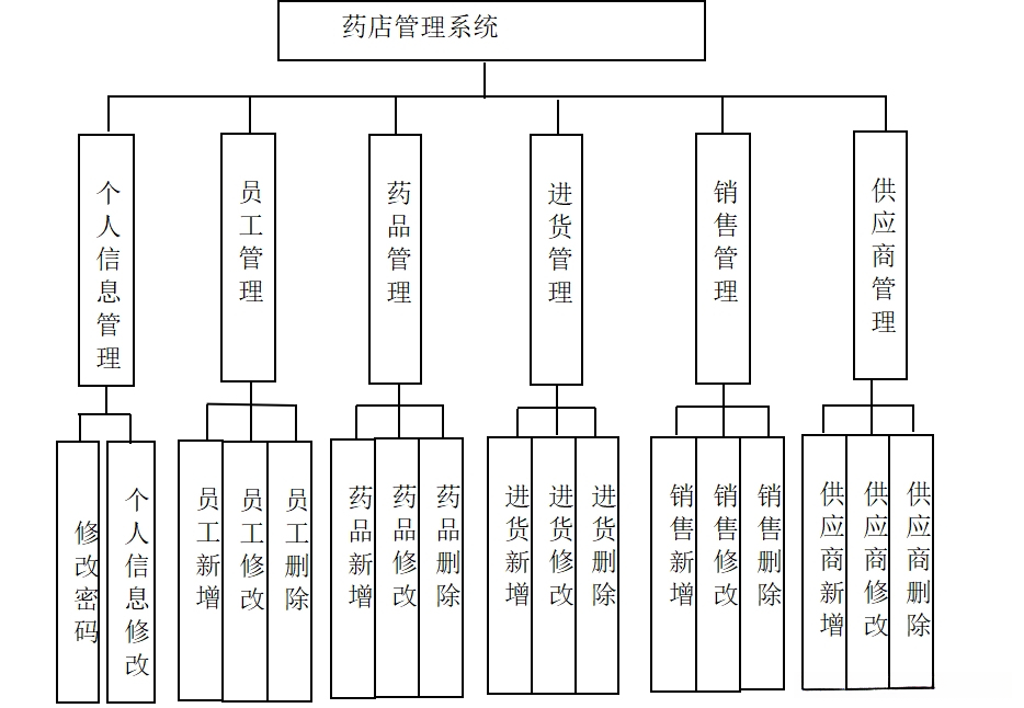 药店管理系统系统在进行系统中功能模块的划分时,采用层次图来进行表示。层次图具有树形结构,它能使用矩形框来描绘数据信息。顶层代表的数据结构很完整,顶层下面的矩形框表示的数据就是子集数据,当然处于最下面的矩形框就是不能再进行细分的数据元素了,使用层次方框图描述系统功能能让用户一目了然,能够明白系统的功能,以及对应功能板块下面的子功能都可以清楚领会。药店管理系统分为管理员和用户两部分操作角色,下面将对他们的功能进行阐述。