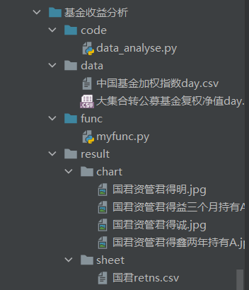 在运行程序前,要在目录里面建好保存收益率曲线和收益率评价的文件夹,如图所示: