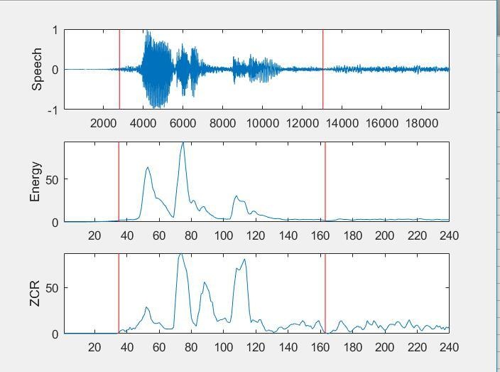 在本研究中,我们采用双门限比较法进行端点检测。该方法以短时能量E和短时平均过零率Z为特征参数,结合两者的优点,检测效果更加显著。有效降低了系统的处理时间,同时有效排除了噪声干扰,从而显著提高了语音信号的处理性能。