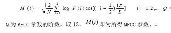 对滤波器输出施加对数运算,进一步施加离散余弦变换(DTC),即可获得MFCC特征: