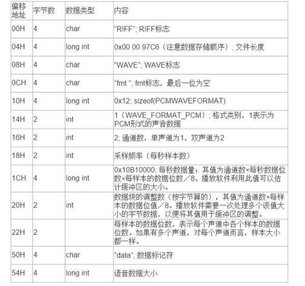WAVE文件格式是Windows系统中声音的常用格式,也是RIFF文件格式中的一种支持格式,现已被广泛采用。整个WAVE文件由文件头和数据块两部分组成。根据其编码方式和采样数的不同,这两部分的大小也会有所差异。在WAVE文件中,所采用的编码方式主要有两种:PCM(脉冲编码调制)和ADPCM(自适应差分脉冲编码调制)。