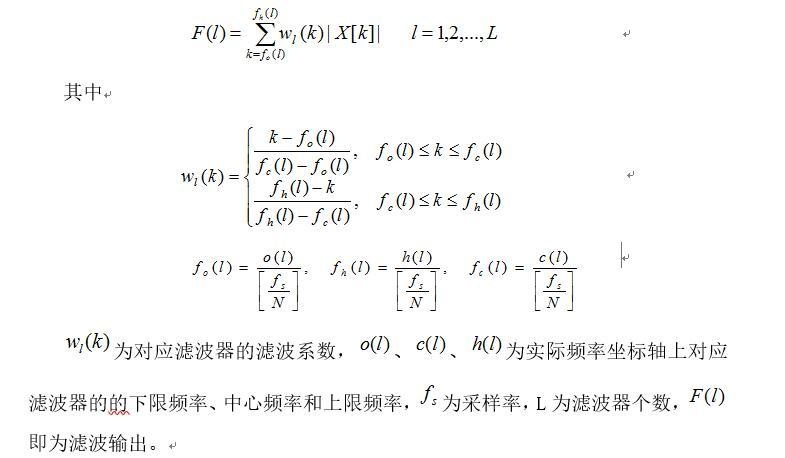 设置三角形滤波器组,并对每一个三角形滤波器计算其对信号幅度谱滤波后的输出结果: