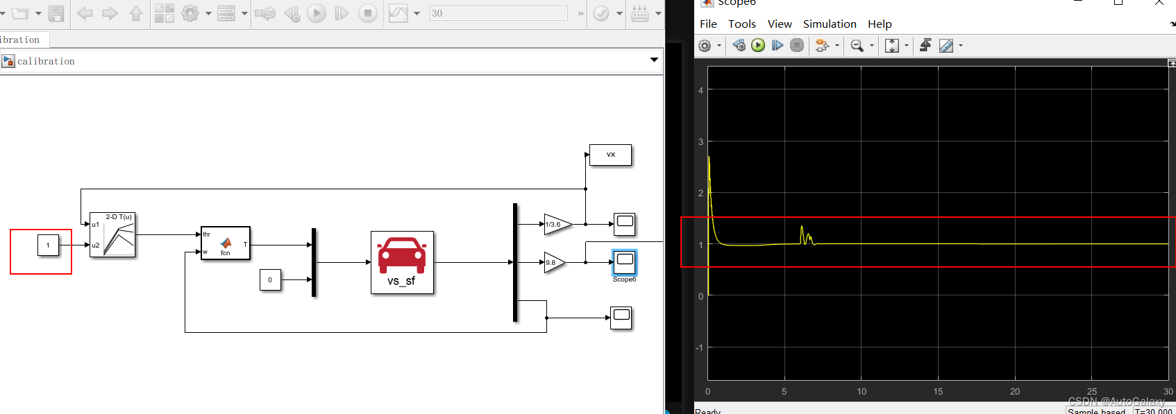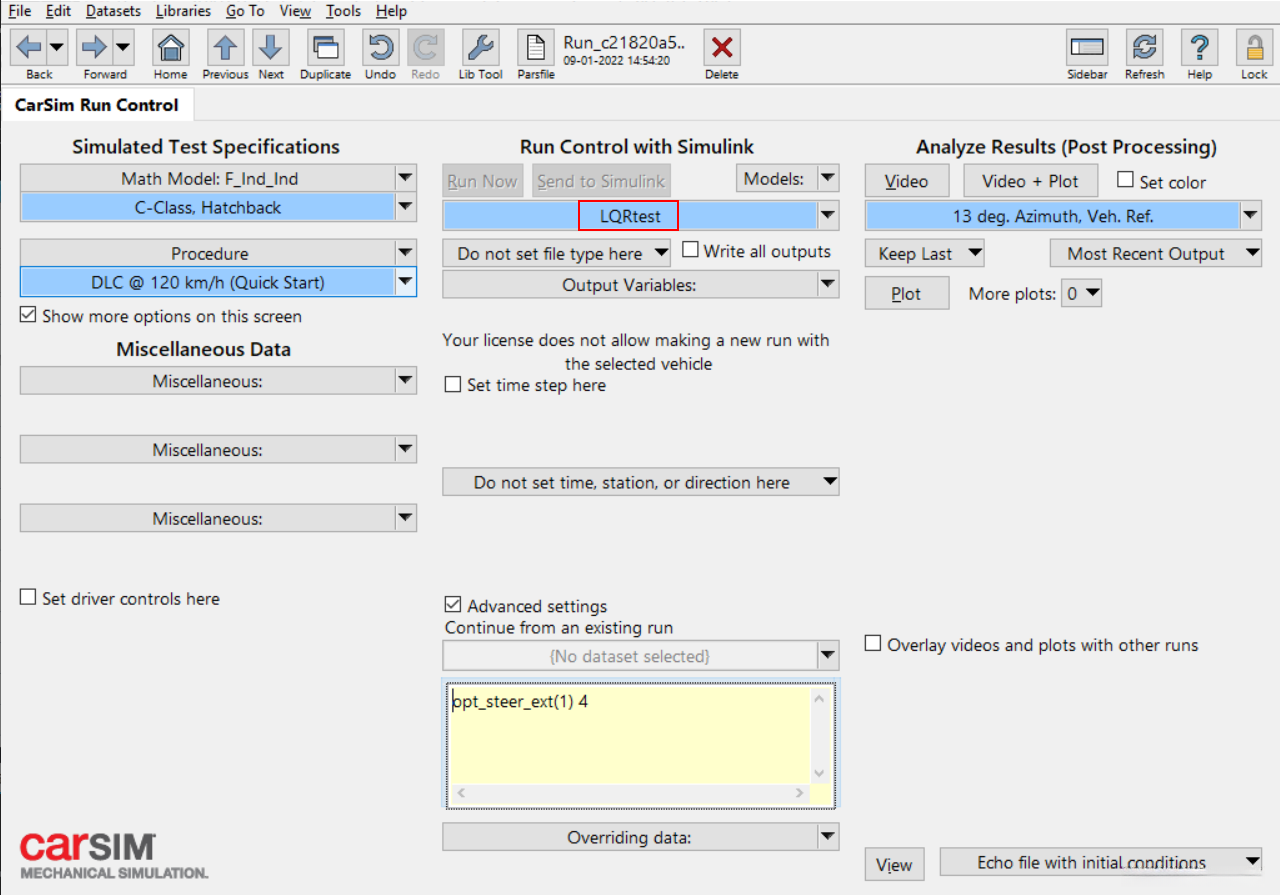 每个独立控制的模型都位于相应的Simulink环境中。在这里,请您只需关注Carsim的具体设置即可完成标定阶段的工作。至于其余的电路搭建部分,请参考Simulink的标准流程进行设置。