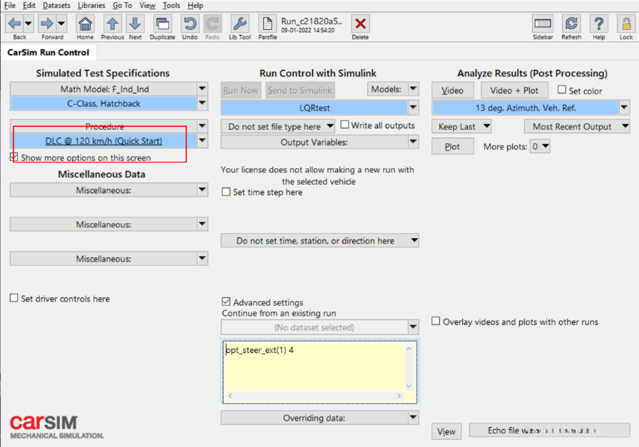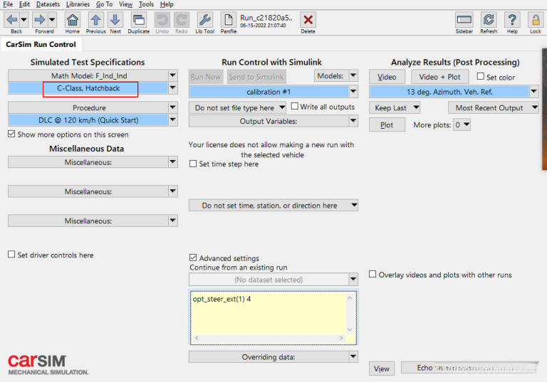 相比之下,在比较中carSim2020表现更好一些,并决定不再选择carSim2019版本。尽管carSim2020运行速度较快这一特点令人称道,但这并非关键问题所在。