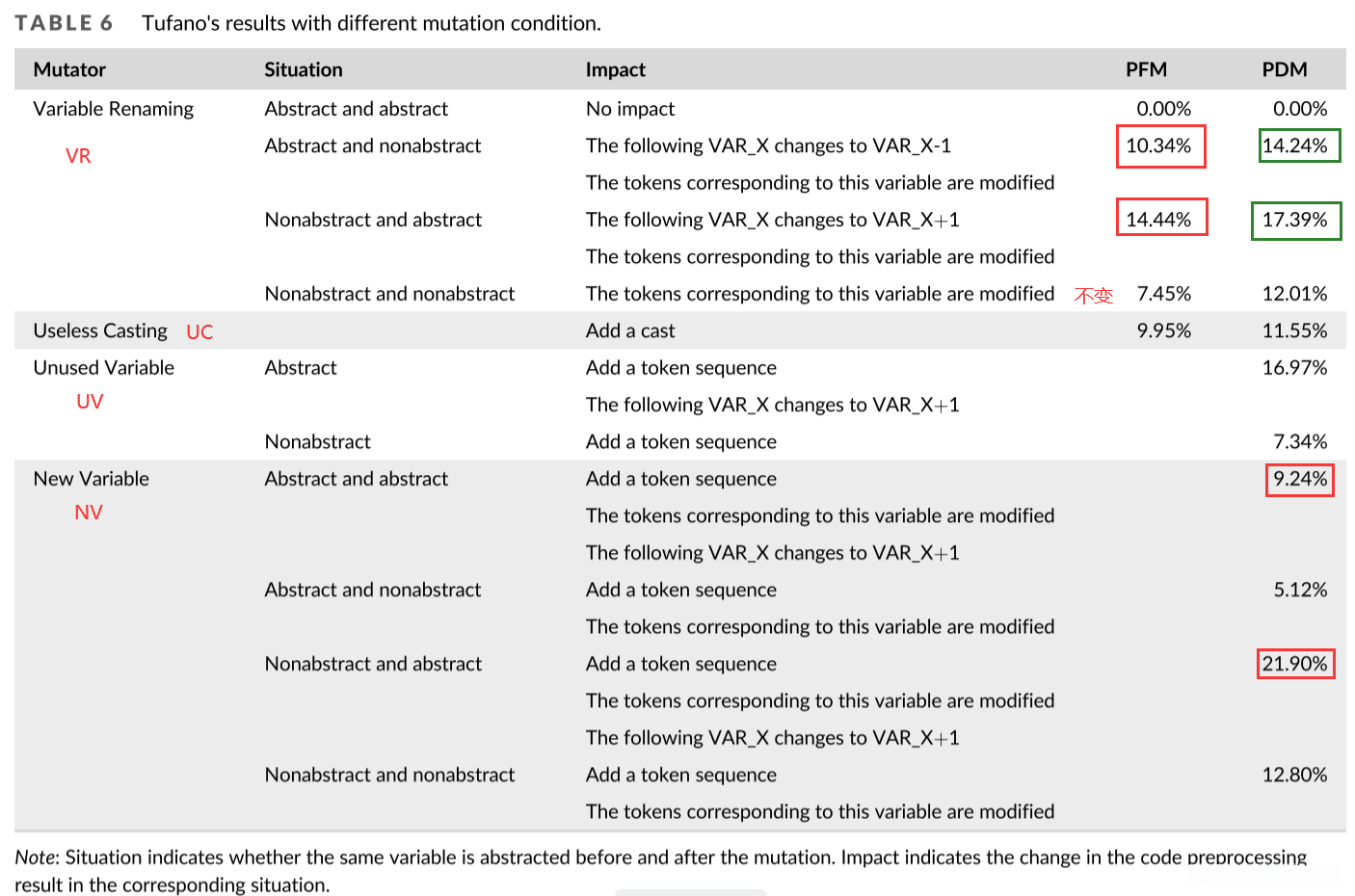发现5.NPR模型的稳健性与其数据处理有关。在Tufano上的实验中,我们发现突变对Tufano算法稳健性的影响与对数据处理结果的影响呈正相关。基于这一发现,我们建议未来的研究人员应该使用更稳定的数据处理。