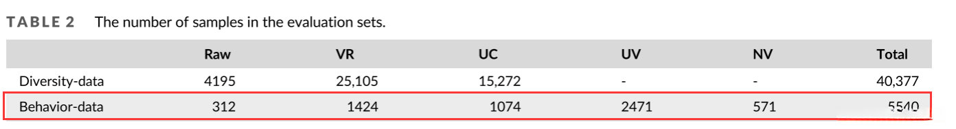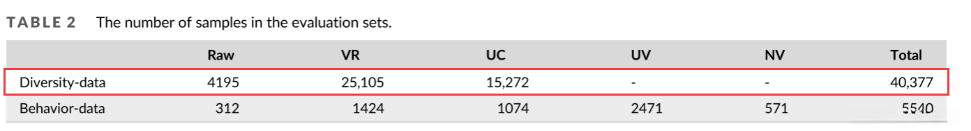 组成。多样性数据的数据源是数据集中的测试集,我们使用VR和UC对测试集进行变异。如表2所示,测试集中有4951个样本,其中756个样本不能突变。对剩余的4195个数据进行突变,产生40,377个突变体,其中25,105个由VR产生,15,272个由UC产生。
