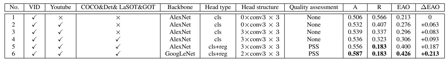 - G1 : 分类与状态估计任务分离:将目标从背景与干扰物中识别出来作为独立任务;通过 bbox 回归来估计目标状态信息有助于适应尺度变化。