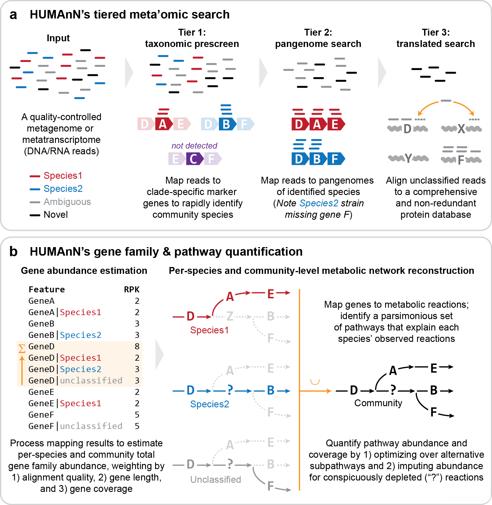 该软件最初由Huttenhower实验室针对HMP项目研发出来的一种用于分析宏基因组测序数据的工具包,并能实现样品中的微生境组成预测以及代谢通路水平的功能解析过程。该程序不仅限于人类微生物组学研究领域,在细菌多样性研究中同样发挥着重要作用,并已成为当前宏基因组分析领域的主流软件之一。在2020年已正式推出新版命名为HUMAnN3。