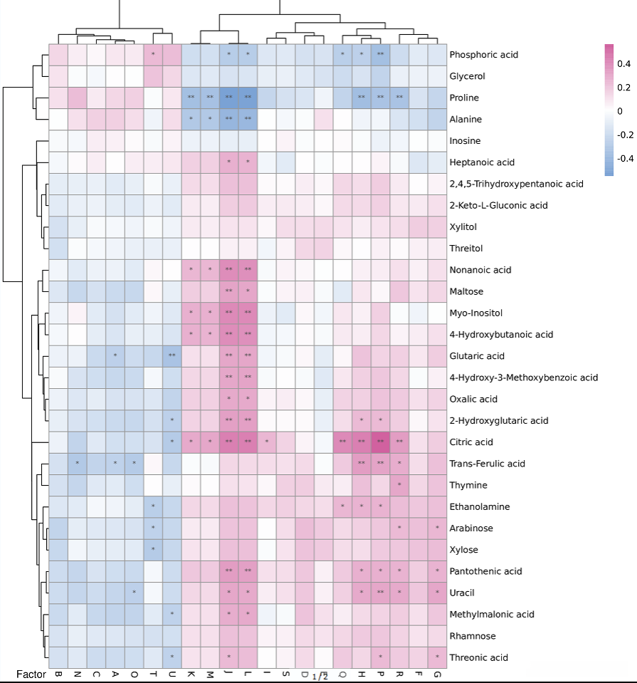 (2)横轴代表的是临床因子,纵轴代表的是代谢物。