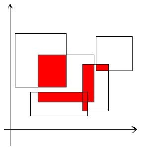 给定平面上若干矩形,求出被这些矩形覆盖过至少两次的区域的面积.