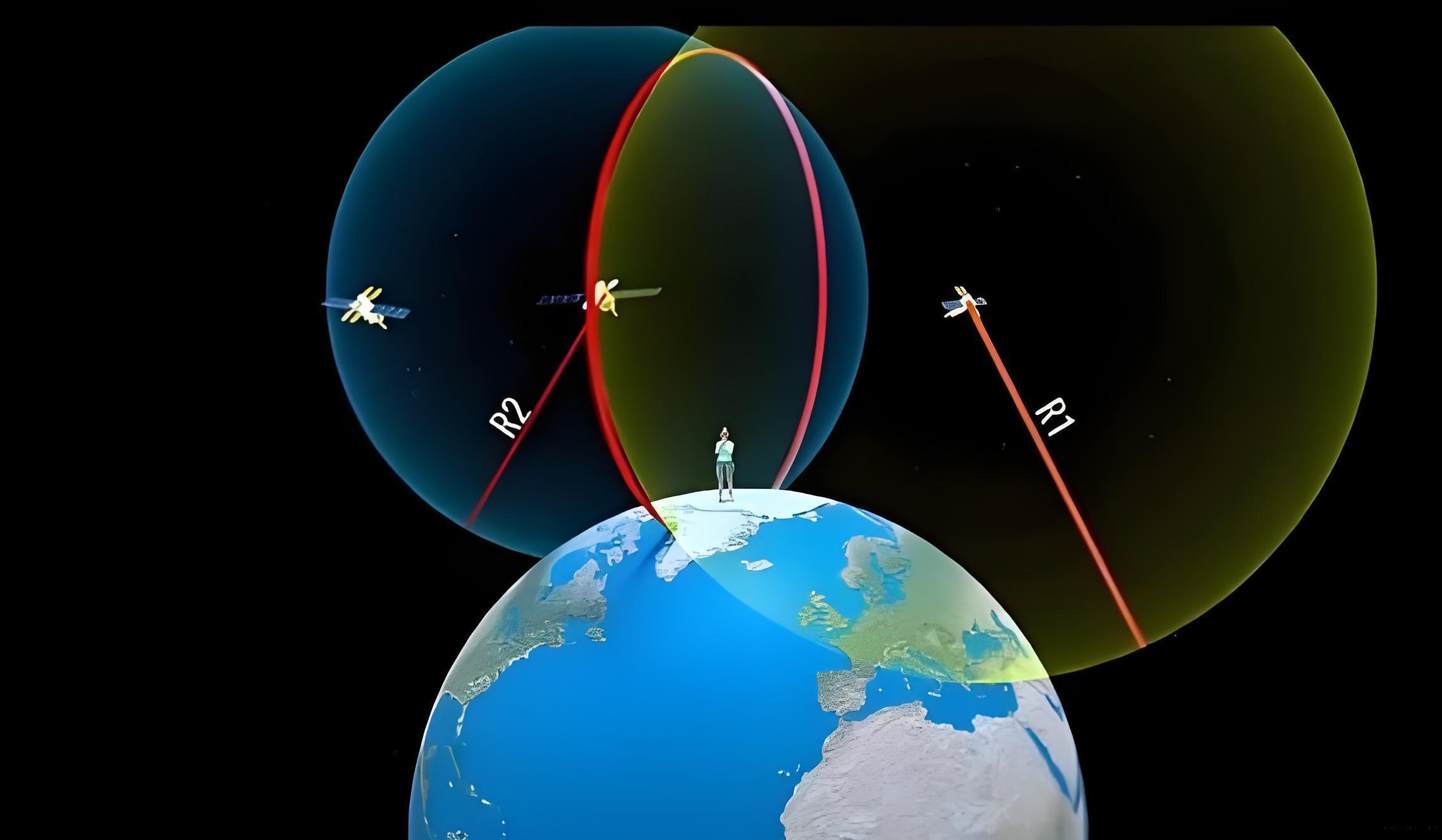 卫星导航的“三球交汇”原理(北斗卫星定位原理):为什么用户接收机定位需要接收三颗以上导航卫星的信号?【四球面相交法】