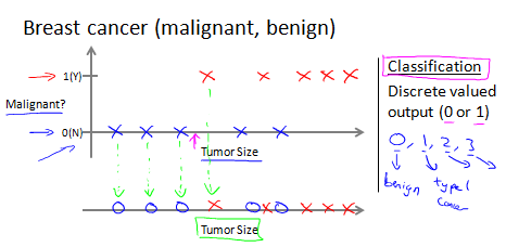 乳腺癌(良性,恶性)预测问题-分类(Classification): 预测离散的输出值(0, 1)