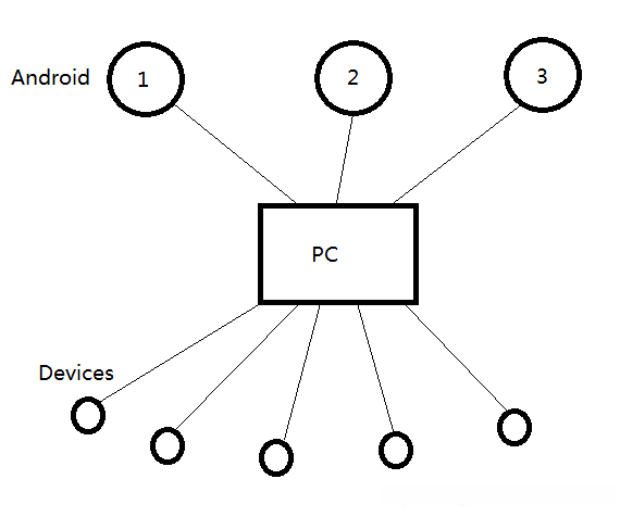 Android终端作为TCP Client连接到PC的TCP 8080端口,通过Server获取和配置已连接的设备信息;