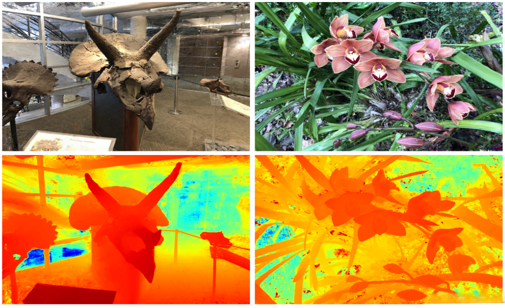 The capability to attain precise depth measurements allows for the creation of highly detailed 3D models, even when relying on a small set of images. Fine details can be perceived in both RGB and depth channels.