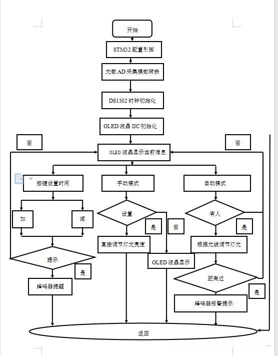2、OLED液晶显示当前时间、亮度等级、自动/手动模式、定时闹钟提醒。