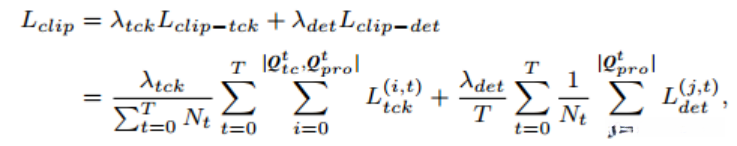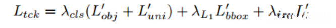 用于跟踪的损失包括: Focal Loss(两项)+ 基于边界框的回归L1损失 + 交并比(IoU)损失。其中一项Focal Loss用于计算objectness score置信度;另一项则用于计算uniqueness score置信度
