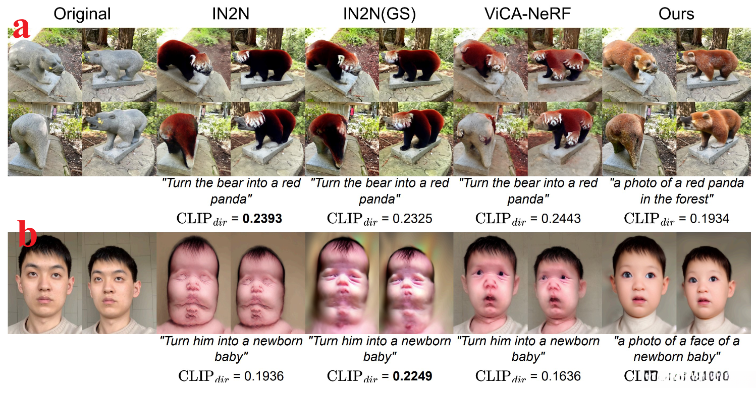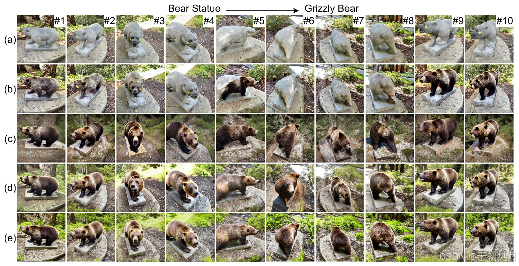 (c) 我们的创新性地提出了一个深度条件多视图一致编辑框架,在前人由于不一致编辑导致的模糊或不合理三维结果中取得了显著提升。