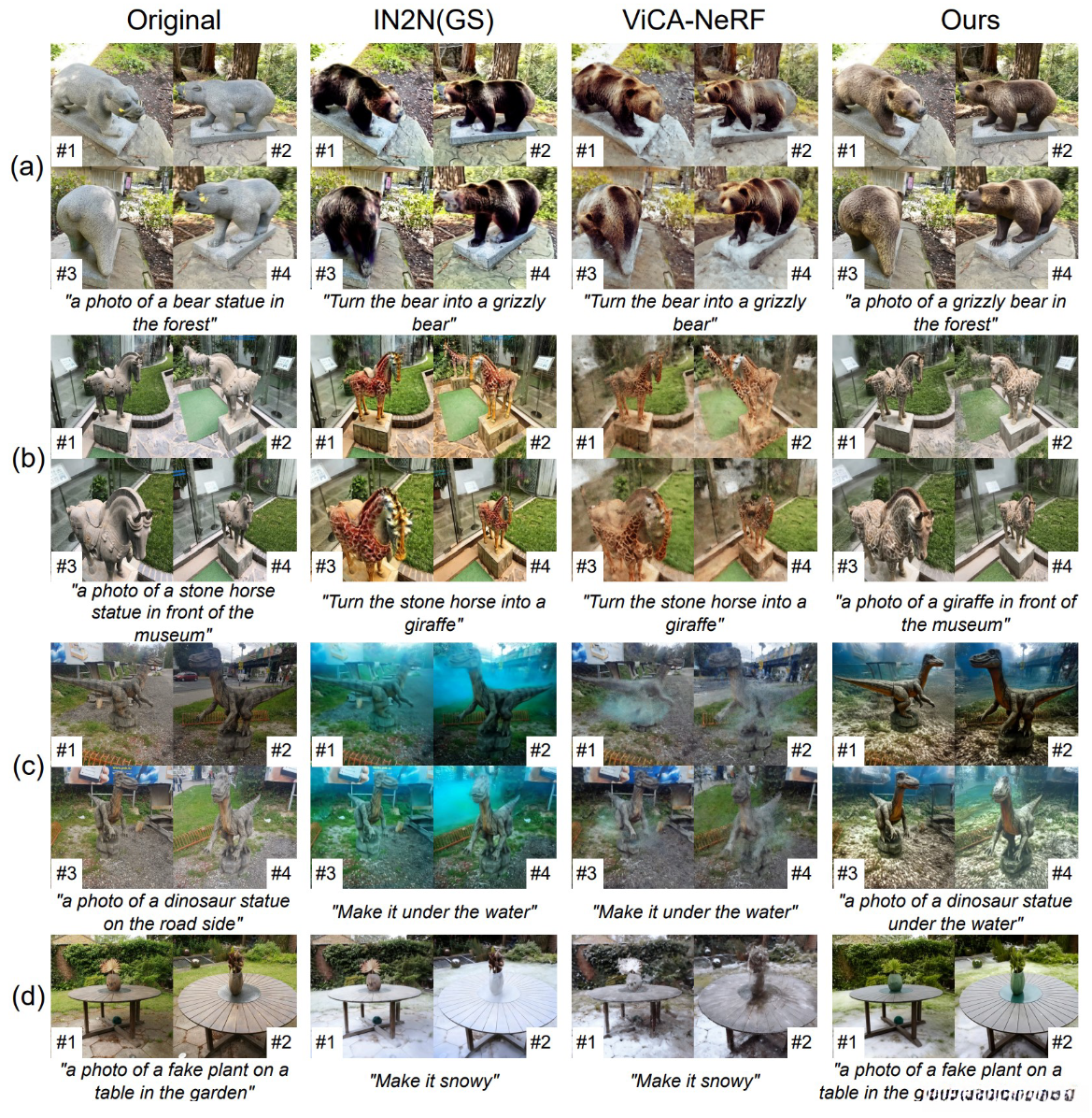 (a) GaussCtrl edits a 3DGS scene by modifying its descriptive prompt.