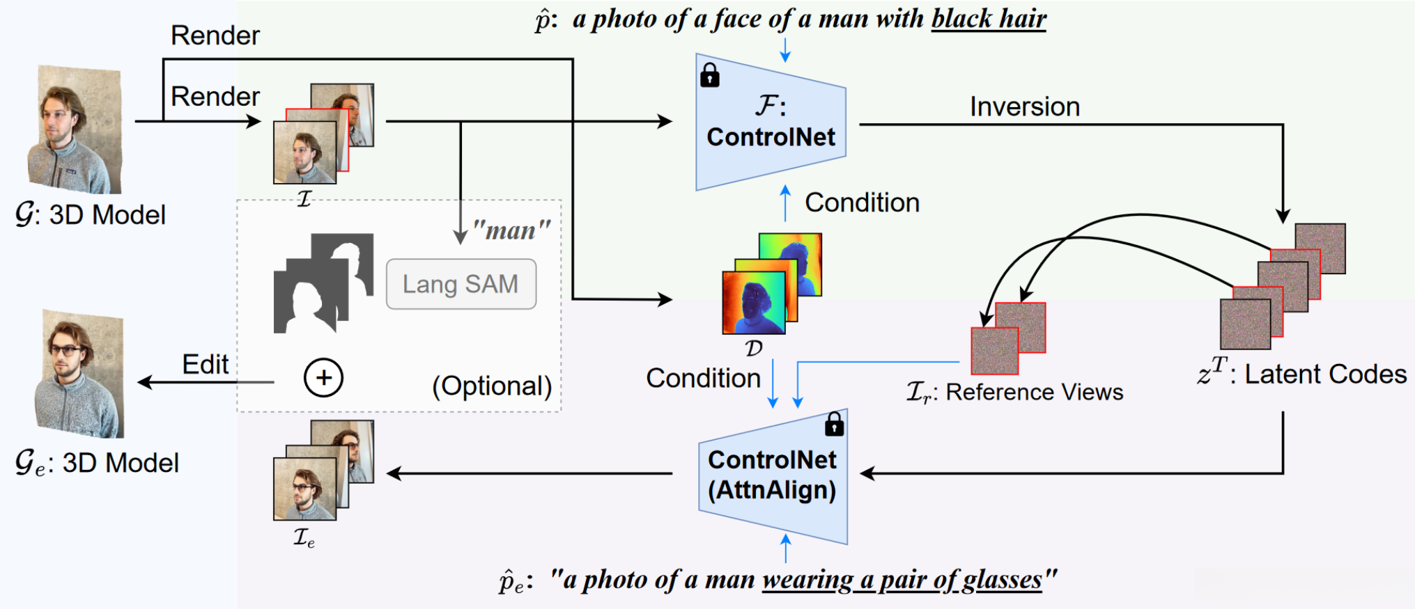 该深度条件编辑法以ControlNet为基础, 旨在实现几何一致性的目标.