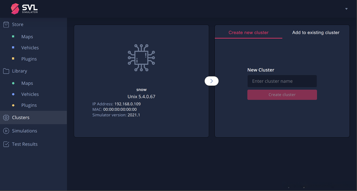 当集群界面未显示New Cluster时, 很可能是你的SVL Simulator处于离线状态, 请尝试重新连接以解决问题.